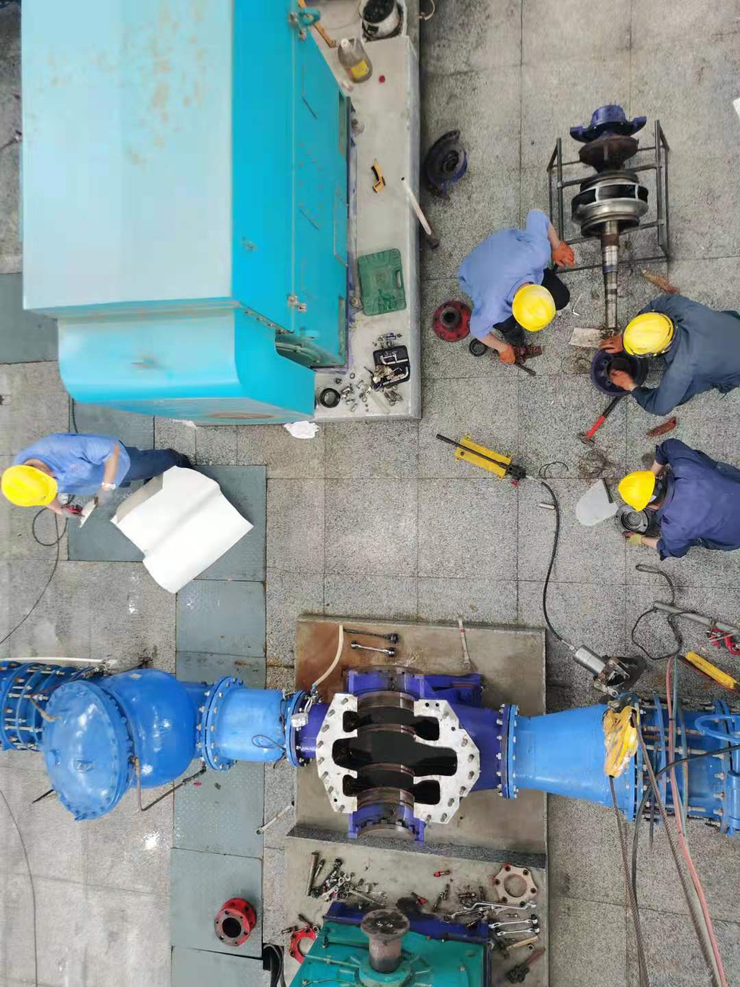因三灣管道施工,從6月中旬開始庫區(qū)斷供,水廠全力抽取江水,水中雜物順流堵泵現(xiàn)象頻發(fā)。泵站值班人員隨時監(jiān)測運行數(shù)據(jù),及時拆卸泵殼清掏雜物以保證設(shè)備高效運行。其中愛河泵站5臺機組連續(xù)運行,堵泵情況最為嚴(yán)重。由于泵站屋頂?shù)桶L(fēng)不暢,室內(nèi)溫度超過五十?dāng)z氏度。為了維持取水效率,他們冒著中暑風(fēng)險開泵搶修作業(yè),充分展現(xiàn)了供水人愛崗敬業(yè),服務(wù)社會的精神風(fēng)貌。